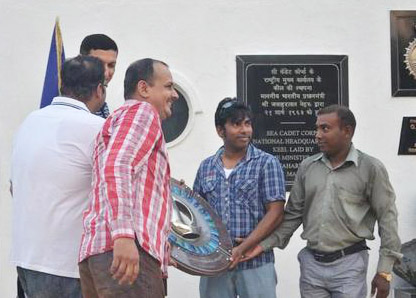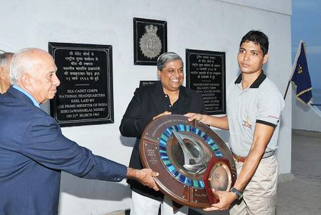 The Memorial Trophy being presented by Vice Admiral AR Karve, AVSM, Chief of Staff, WNC to the winners of Seabird Class, all of who are ex- Seacadets!